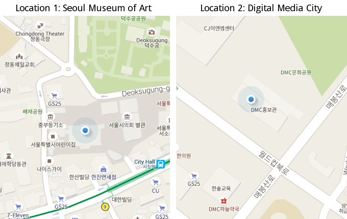 For the occassion of the Media Biennale we installed Packetbridge in Seoul (South Korea) at two different spots in the city. Fortunately, we had time to work on improving the recording and playback scripts. We managed to setup a bi-directional packet exchange; meaning that packets from one location got sent to the other one and vica-versa. Even though, there were a gazillion of WIFI accesspoints inside of the museum, the geo-relocation was working. The system got obviously so confused that if you were looking onto your map, you were being teleported between the two locations.